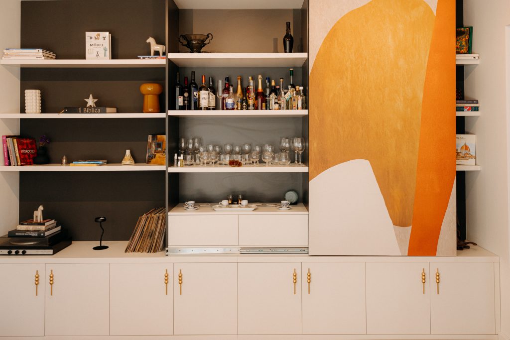 Mini-bar cu sistem de glisare și tapet aplicat pe mobilier%3$s>