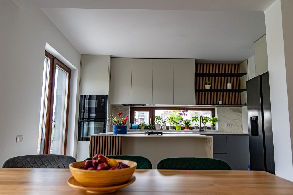 Casa finalizată reflectă o atenție deosebită la detalii și un echilibru între funcționalitate și estetică. Deși dispune de numeroase spații de depozitare, interiorul este aerisit și armonios, fiecare element având un rol bine definit în cadrul ansamblului. Această abordare meticuloasă a condus la crearea unei locuințe organizate, confortabile și în perfectă concordanță cu personalitatea și stilul de viață al proprietarilor.